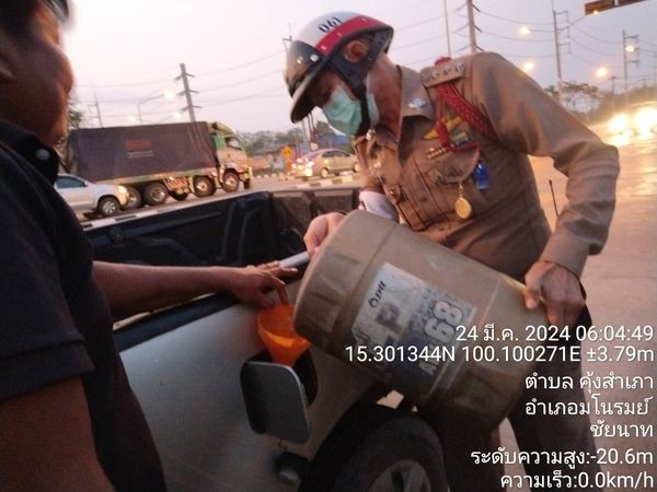วันที่ 24 มี.ค. 2567 สายตรวจจราจร สภ.มโนรมย์ ให้การช่วยเหลือประชาชนรถไม่ติด(น้ำมันหมด) โดยได้นำรถจรา
