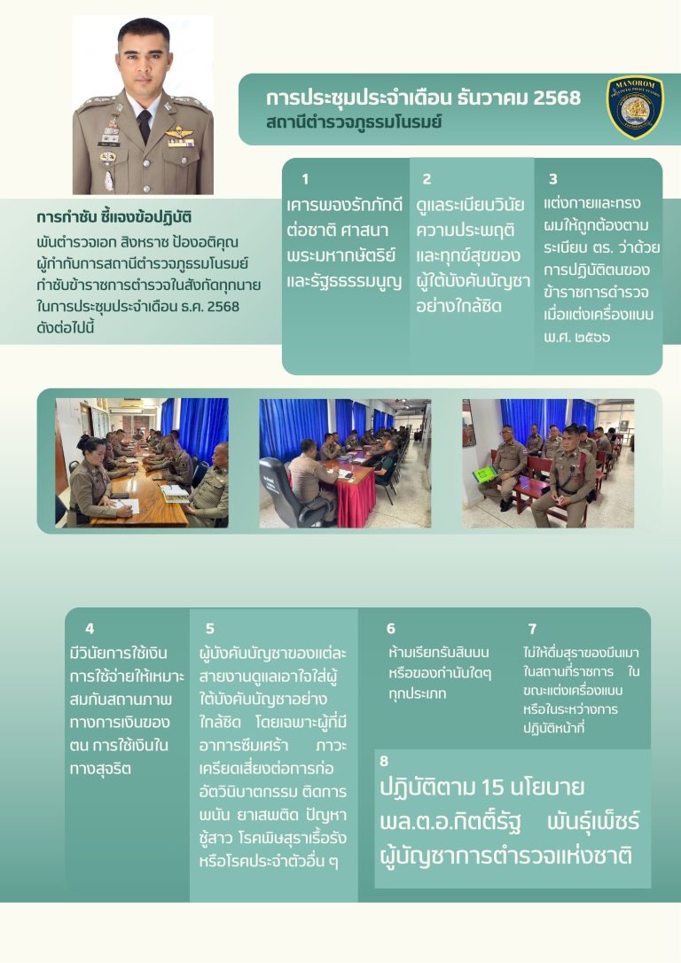 วันที่ 10 เมษายน 2567 เวลา 10.00 – 11.30 น. พ.ต.ท.บรรจบ ราชกิจ สวป.สภ.มโนรมย์ หัวหน้าชุดมวลชนส